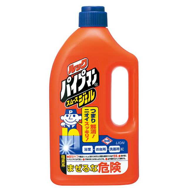A gel pipe cleaner that adheres well to inner pipe surfaces to effectively clean away slime and dissolve hair